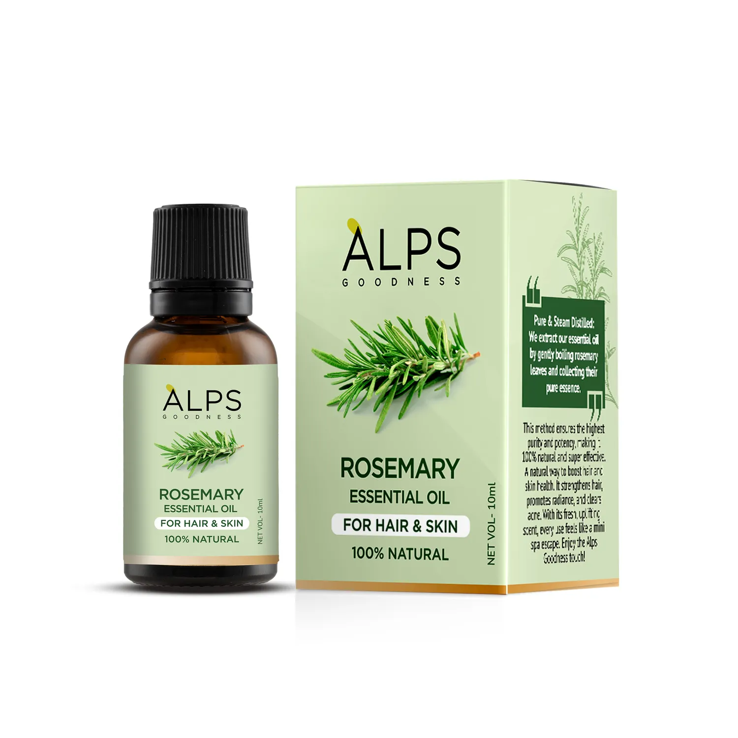 Experience the power of nature with Alps Goodness Rosemary Essential Oil, a potent oil extracted from rosemary leaves to deliver powerful benefits for both hair and skin. Rich in essential nutrients like iron, calcium, and vitamins, this oil helps nourish the scalp, strengthen hair, and support overall hair health.